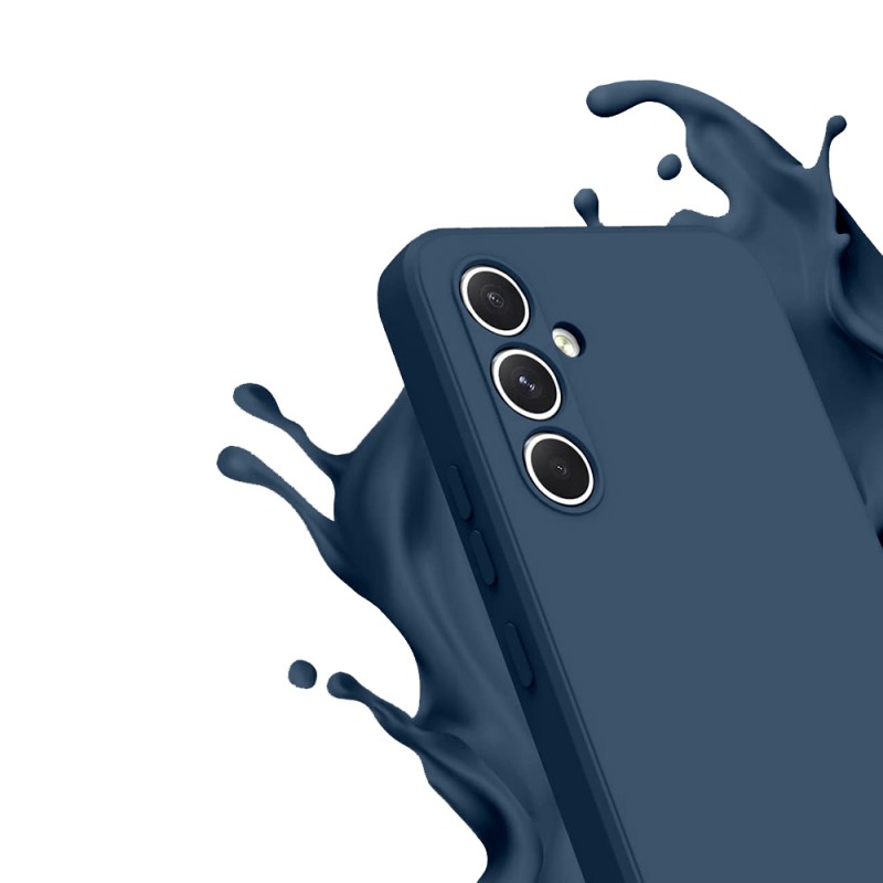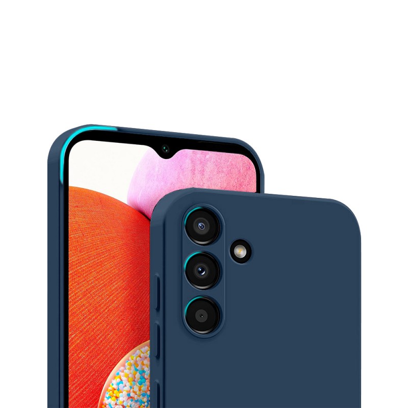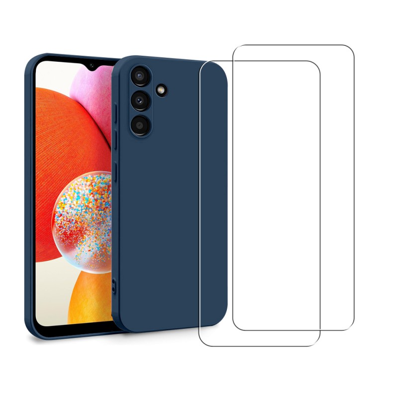 • > High Tech>Coque + 2 Vitres Offertes >Coque Samsung Galaxy A14 Silicone liquide Bleue Marine + 2 Vitres en Verre trempé Protection écran Antichocs