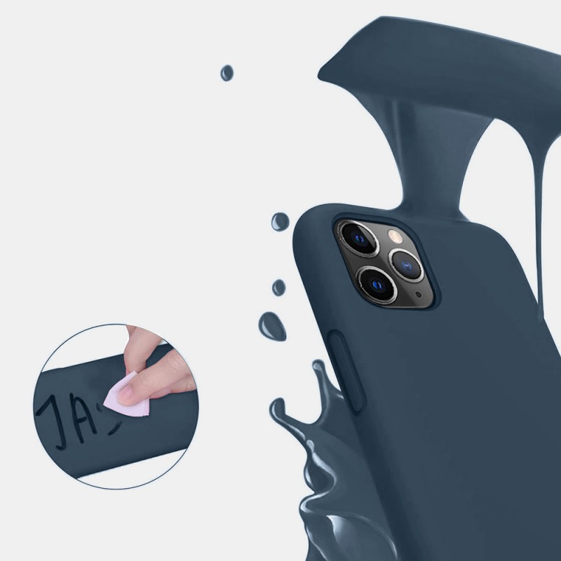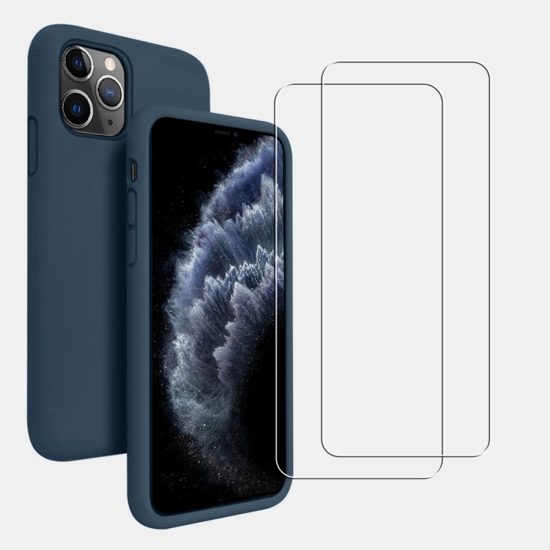• Coque iPhone 11 Pro Max Silicone liquide Bleu Marine + 2 Vitres en Verre trempé Protection écran Antichocs