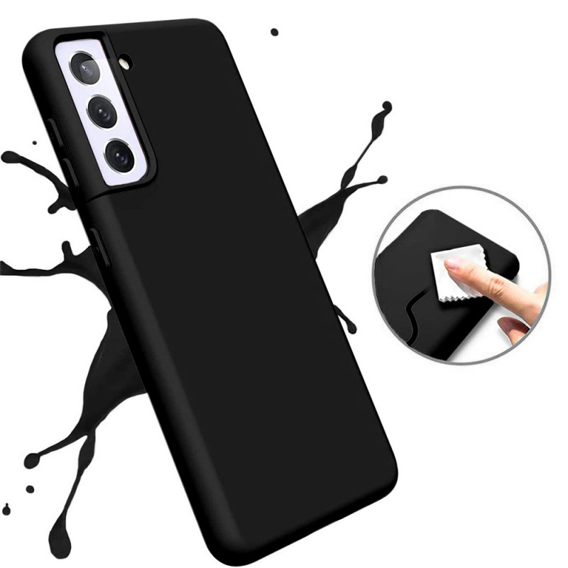 • > Coques>Coque Samsung Galaxy S21 Plus 5G Silicone liquide Noire + 2 Vitres en Verre trempé Protection écran Antichocs