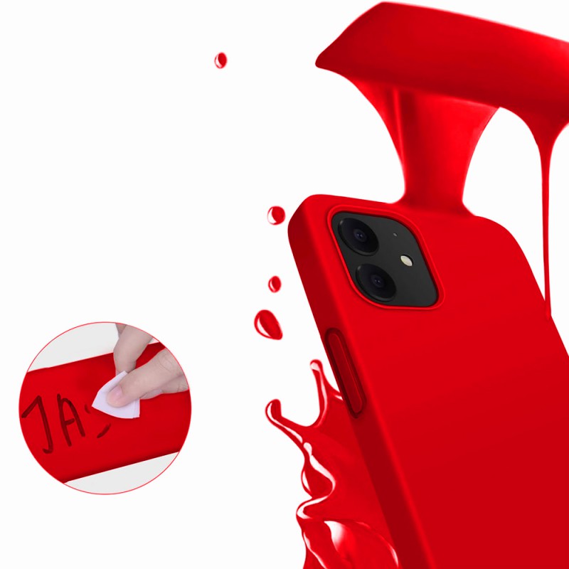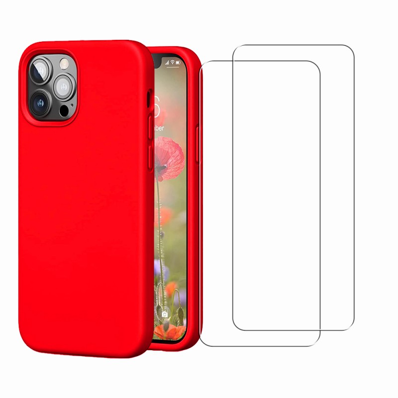 Pack coque anti-choc silicone liquide rouge + 2 verres trempés, offrant une protection intégrale compatible avec votre iPhone contre les chocs, les rayures et la poussière. Kit de nettoyage et d'installation inclus.