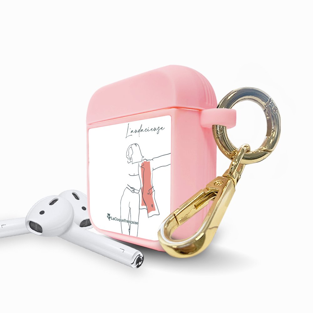 Housse pour Airpods silicone liquide rose L'audacieuse Motif Ecriture Tendance La Coque Francaise