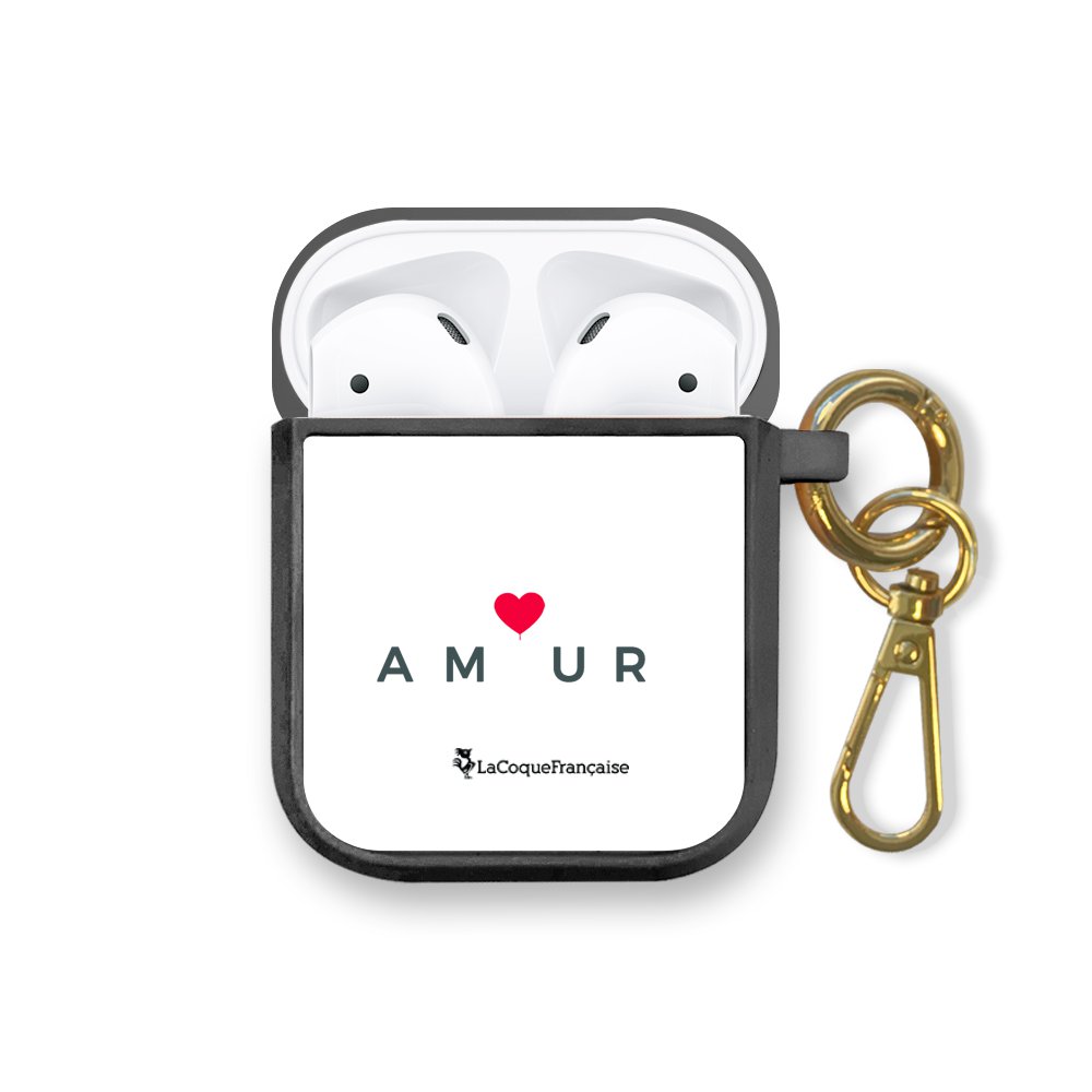 Housse pour airpods silicone liquide noir Amour_coeur Motif Ecriture Tendance La Coque Francaise