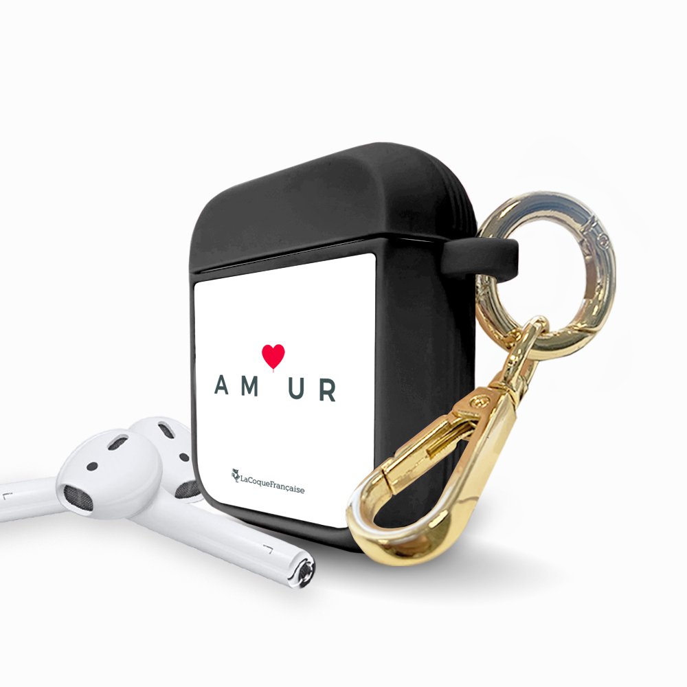 • > High Tech>Audio>Accessoires Airpod>Housse pour airpods silicone liquide noir Amour_coeur Motif Ecriture Tendance La Coque Francaise