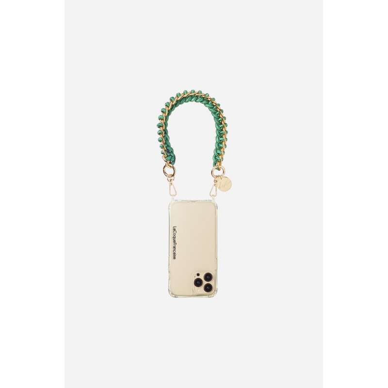 • > High Tech>Gadgets>Bijoux de téléphones>Bijoux de téléphone Romy avec mousquetons dorés 40 cm cordon tressé vert avec chaîne en metal