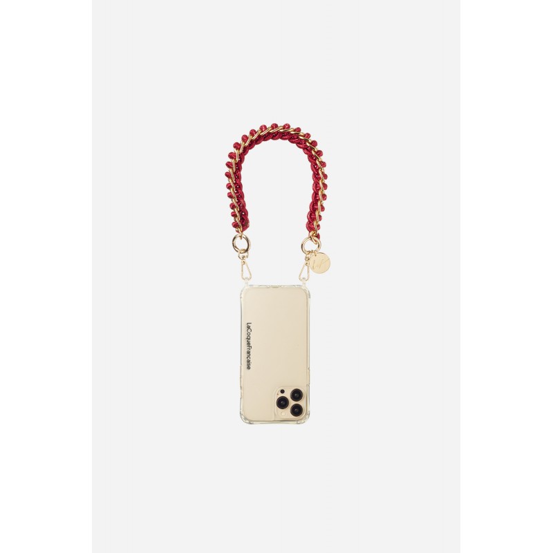• > High Tech>Gadgets>Bijoux de téléphones>Bijoux de téléphone Romy avec mousquetons dorés 40 cm cordon tressé bordeaux avec chaîne en metal