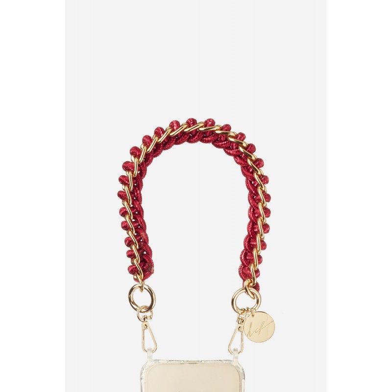 Bijoux de téléphone Romy avec mousquetons dorés 40 cm cordon tressé bordeaux avec chaîne en metal