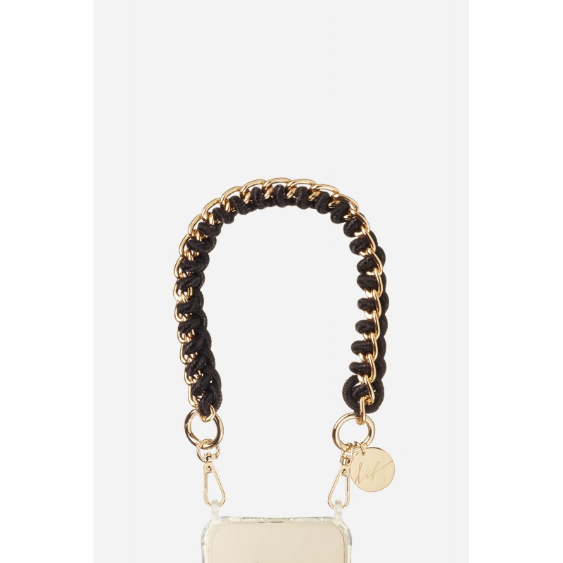 • > High Tech>Gadgets>Bijoux de téléphones>Bijoux de téléphone Romy avec mousquetons dorés 40 cm cordon tressé noir avec chaîne en metal