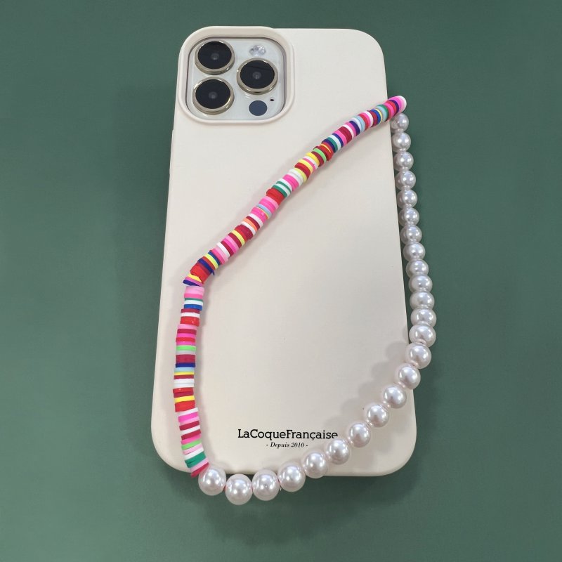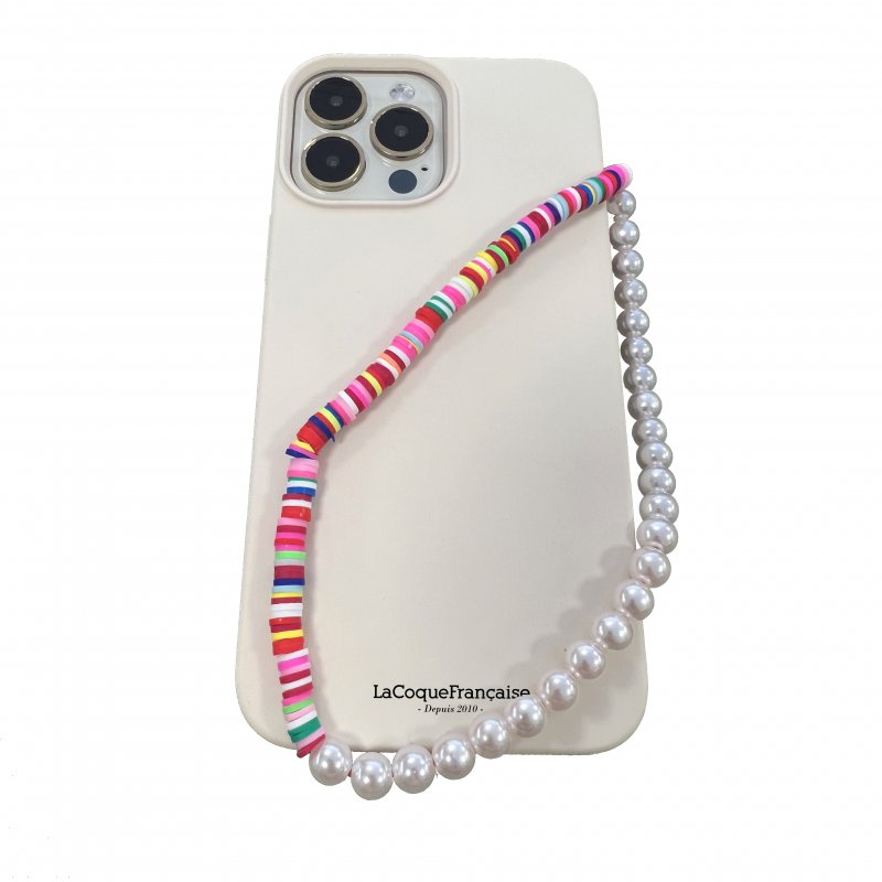 • Bijoux de téléphone LOUNA à accrocher à votre coque perles blanches et multicolores - longueur 35 cm