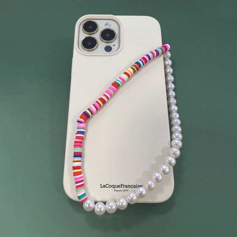 • > High Tech>Gadgets>Bijoux de téléphones>Bijoux de téléphone LOUNA à accrocher à votre coque perles blanches et multicolores - longueur 35 cm