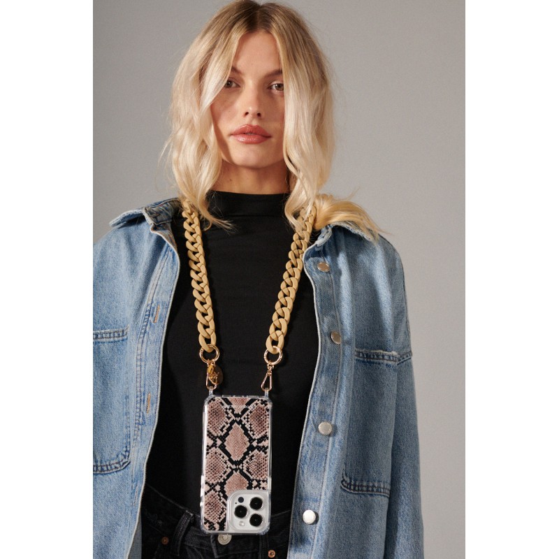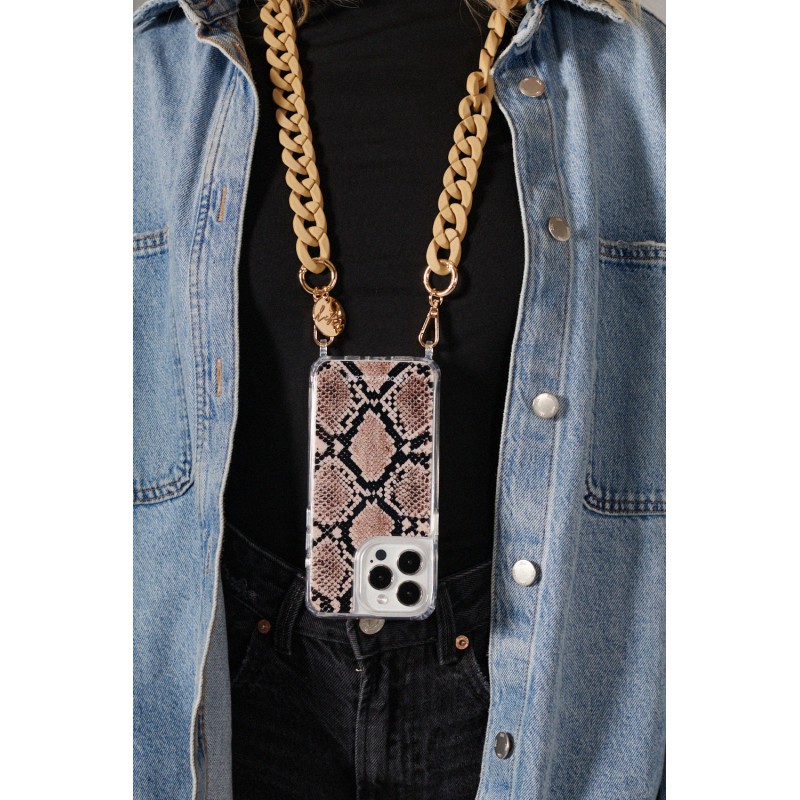 L'accessoire incontournable ! Plus besoin de chercher votre téléphone au fond du sac ou sur votre bureau, il vous suit de partout.Parfait pour avoir les mains libres tout en faisant autres choses, nos chaînes peuvent être portées en bandoulière ou en collier.Nos chaînes bijoux mesurent 120 cm, composées de résine ultra résistante elles donneront une touche chic à vos tenues.Vous pouvez retirer la chaîne en toute simplicité et à tout moment, et l'échanger comme vous le souhaitez au grès de vos tenues et vos envies.Vous avez la possibilité d’adapter votre coque avec les différentes chaines que nous proposons où garder un style plus sobre avec une lanière de votre choix.La chaîne est livrée dans un pochon en coton réutilisable.