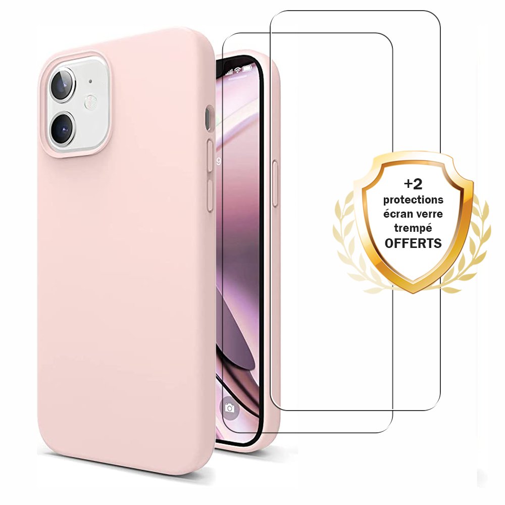 Coque iPhone 11 Silicone liquide Rose + 2 Vitres en Verre trempé Protection écran Antichocs