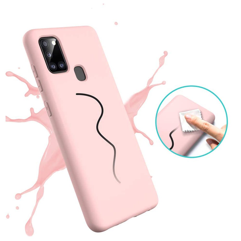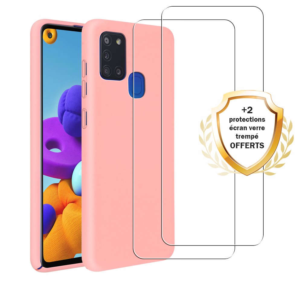 • > Coques>Coque Samsung Galaxy A21S Silicone liquide Rose + 2 Vitres en Verre trempé Protection écran Antichocs