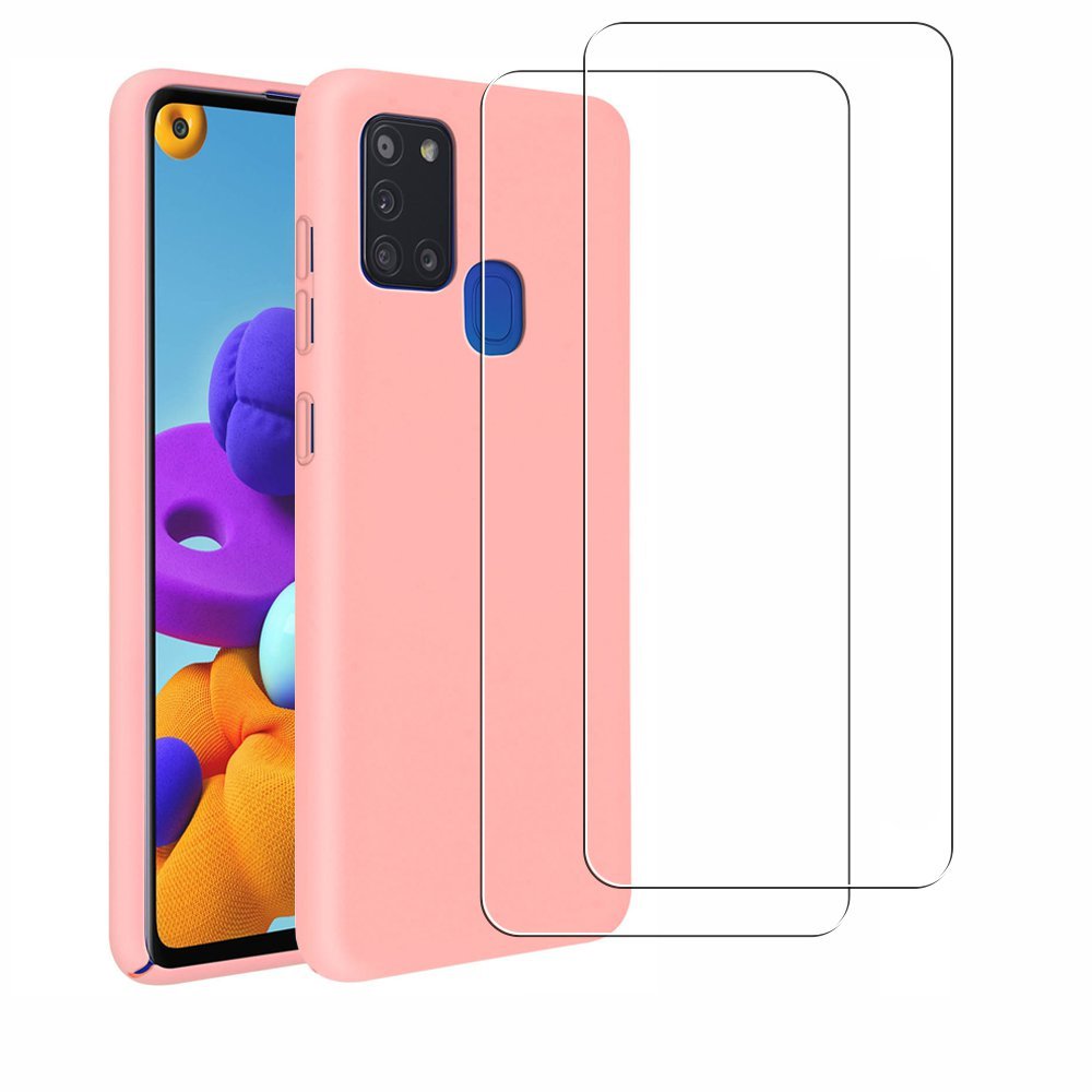 • Coque Samsung Galaxy A21S Silicone liquide Rose + 2 Vitres en Verre trempé Protection écran Antichocs