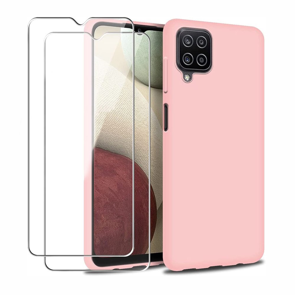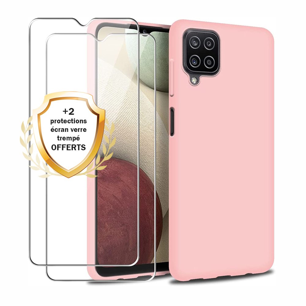 • Coque Samsung Galaxy A12 Silicone liquide Rose + 2 Vitres en Verre trempé Protection écran Antichocs