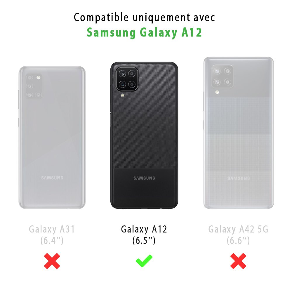 Coque souple au toucher doux ultra resistante spécialement conçue pour Samsung Galaxy A12. Pack coque anti-choc + 2 Vitres en verre trempé pour une protection intégrale de votre Samsung Galaxy A12 contre les chocs, les rayures et la poussière. Les fonctionnalités tactiles de l'écran sont préservées. Compatible avec chargement sans fil (induction)