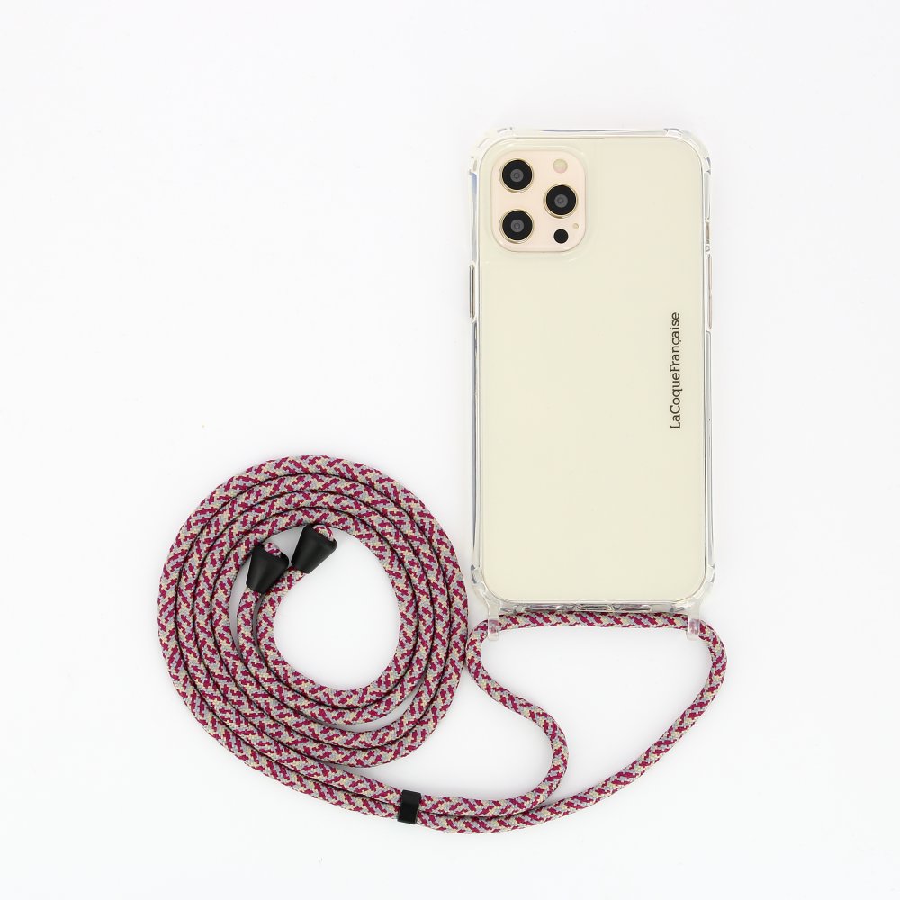 • > High Tech>Gadgets>Cordons>Lanière cordon Lilou en coton tressée avec embout en métal noir mat, coloris bordeau, beige et gris