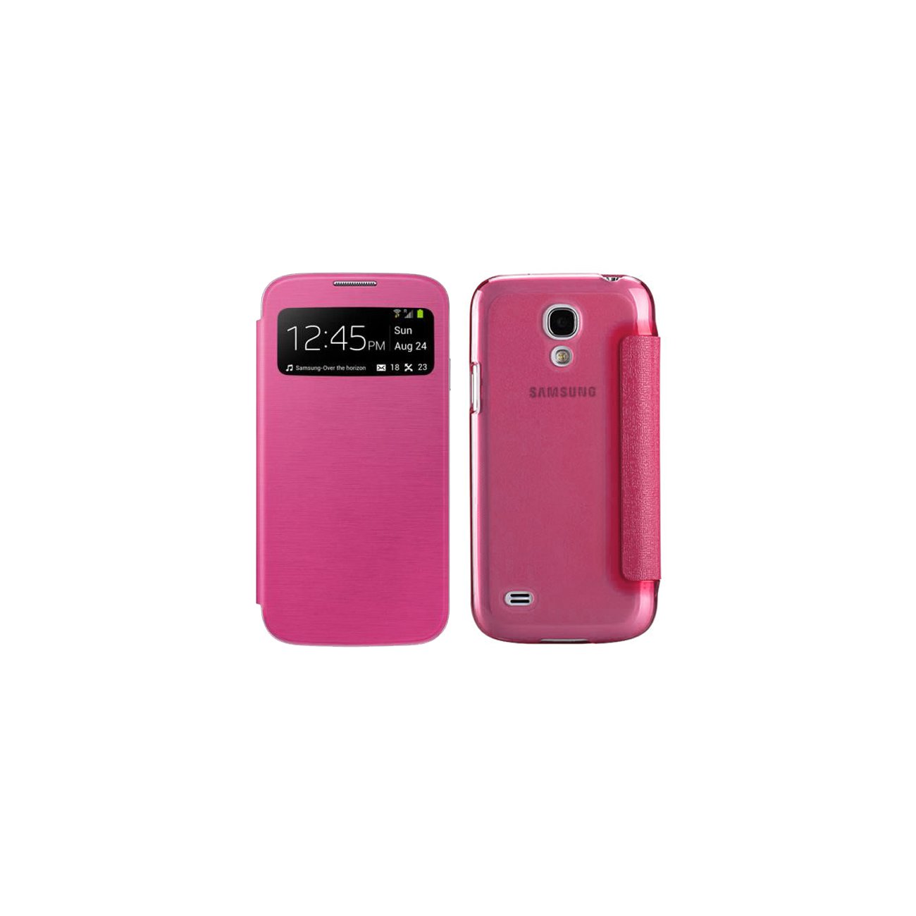 Etui livre avec fenêtre rose fushia dos transparent pour Samsung Galaxy S4 mini