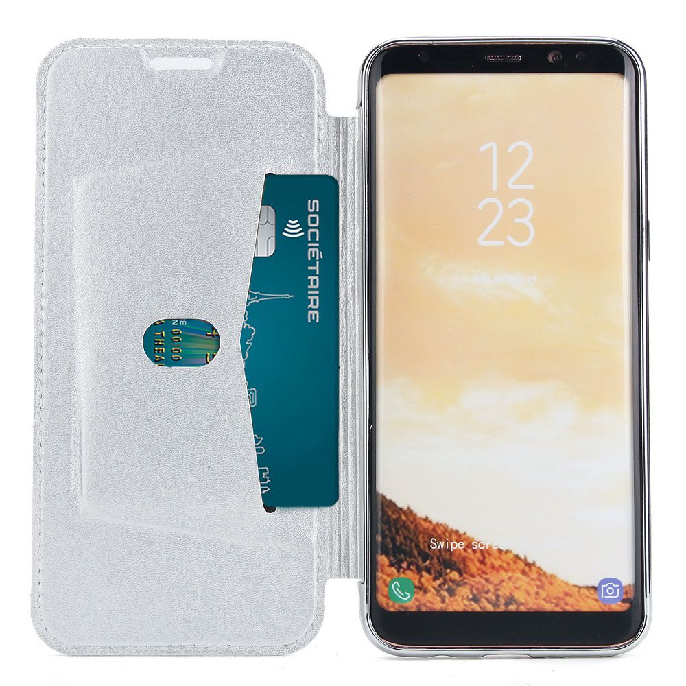 • > High Tech>Etuis>Samsung>Etui Samsung Galaxy S8 Plus de protection avec paillettes couleur Argent et coque arrière en silicone