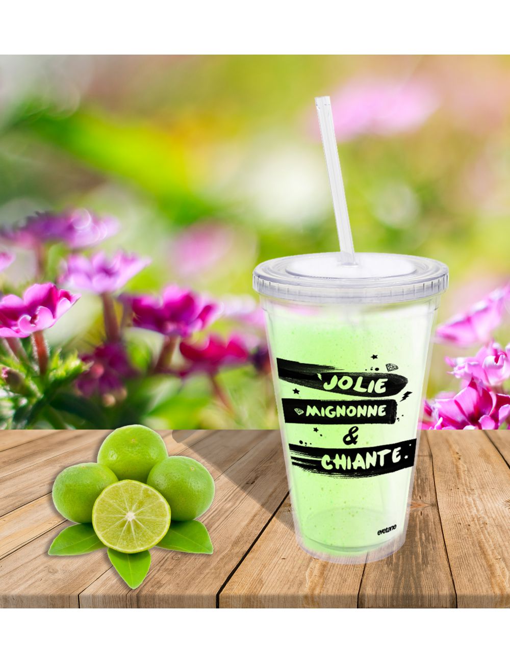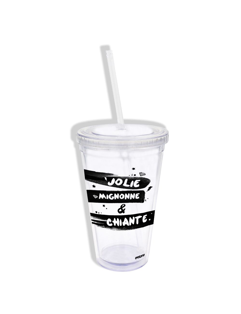 • Mug transparent avec paille en plastique Jolie, Mignone & Chiante